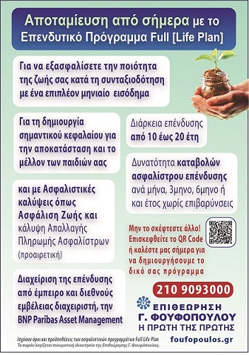 Στην Εθνική Ασφαλιστική, με το πρόγραμμα Full Life Plan, σας παρέχουμε τη δυνατότητα δημιουργίας ενός κεφαλαίου μέσω τακτικών αποταμιεύσεων, χωρίς αρχικό κεφάλαιο.